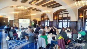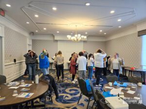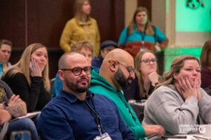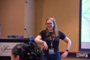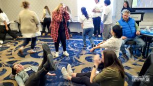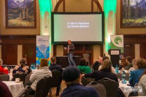 The fun and collaboration began even before our official conference opening, highlighted by the first-ever Shaping the Future Research Roundtable, The National Forum and an outdoor session How to Be an Outdoor Explorer in Your School! (with teachers running around the hotel on a frantic scavenger hunt!). Then delegates braved the weather and road conditions to arrive for our beautiful conference opening led by Elder Helmer and his granddaughter as well as dancers and drummers from the Mînî Thnî Community School Pow Wow Academy. We then prepared for our first keynote led by Sunaina Sharma who discussed the use of technology in classrooms and creating an engaged and inclusive student environment. From there it was time for our first breakout sessions where we found ourselves outdoors connecting with nature and indoors creating meaningful connections with each other. The day was capped off with our Exhibitor MarketPLAYce where delegates got a chance to play some games, talk with our fantastic exhibitors and got a chance to win some great prizes!