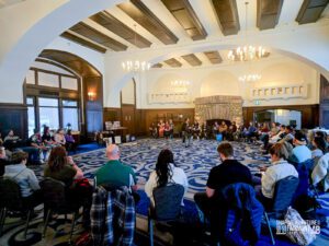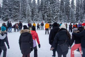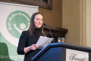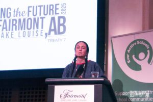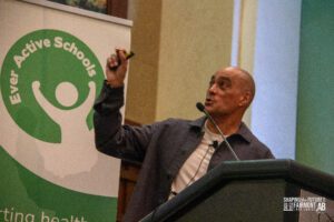 The second day of Shaping the Future began early for some who were willing to face the cold on a winter run and walk alongside a Move and Strengthen activity and a smudge. We then moved into our first sessions of the day which included topics around active living, mental well-being, reconciliation and resilience and more. Just before lunch, we all gathered for our second keynote, this one led by two of our Youth Advisory Council members Yussra Asrar and Keiran Good. They captivated the crowd sharing the stories that inspired them to make a difference while encouraging the delegates to keep shaping the future for all students. Following that we broke out into two more concurrent blocks before our much-protected wellness break, which gave delegates a chance to unwind and reset before the Running Shoe Reception. That night we welcomed our delegates into the Mount Temple Ballroom for the Running Shoe Reception, filled with games, drinks, food and even more connection with each other. Following some messages and giveaways from our sponsors we were proud to unveil the potential future for the brand of Ever Active Schools before capping the night off with some lively dancing (that probably went too late for some!).